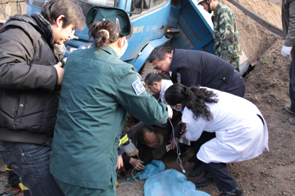 圖二:救援人員車肚下救