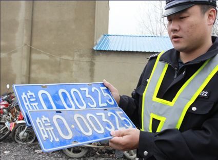 當(dāng)日上午9時(shí)許,淮南市交警支隊(duì)公巡大隊(duì)曹庵中隊(duì)民警馬克與同事在206國(guó)道曹庵路段巡邏時(shí),一輛黑色帕薩特闖入了他們的視野,該車懸掛的車牌號(hào)為:“皖O00325”。該輛帕薩特超過(guò)警車的一瞬間,馬克敏銳的發(fā)現(xiàn)該車的車牌色澤暗淡,不像是真的號(hào)牌。馬克當(dāng)即做出了決定:“這輛懸掛的號(hào)牌如果是真的,可謂來(lái)頭不小,這是安徽省公安廳的車號(hào)牌。如果這號(hào)牌有假,情況更加嚴(yán)重!瘪R克與同伴商量之后,緊緊的跟上了這輛可疑的帕薩特。