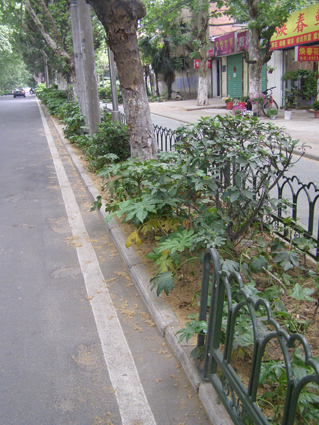 圖:廣場南路綠化帶護欄缺損嚴(yán)重。
