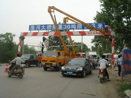5月底,淮河大橋限重30噸限高3米的規(guī)定下發(fā)后,淮河大橋南處專門設(shè)立了限高標(biāo)桿,限高標(biāo)桿分成兩部分,一半是客車專用通道,一半為普通車通道,目的就是防止超重超高車輛駛?cè)搿?/FONT>