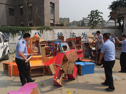 消息見報(bào)的當(dāng)日上午,老龍眼派出所的10名民警及6名聯(lián)防隊(duì)員,對(duì)洞山基地菜市附近的賭博機(jī)進(jìn)行了徹底清查、取締,共收繳、銷毀賭博機(jī)40余臺(tái)。據(jù)老龍眼派出所負(fù)責(zé)人介紹,對(duì)于利用賭博機(jī)賭博的現(xiàn)象,老龍眼派出所一直采取嚴(yán)厲的手段進(jìn)行打擊,然而由于開設(shè)賭博機(jī)人員為了逃避打擊,采取分散隱蔽的經(jīng)營(yíng)方式,從而給管理和取締工作帶了很大的難度,這次集中整治轄區(qū)內(nèi)賭博機(jī)行動(dòng),不單是打擊、取締了《淮河早報(bào)》所報(bào)道的這幾家賭博機(jī)室,同時(shí),老龍眼派出所也舉一反三,安排民警深入社區(qū),細(xì)致摸排,一旦發(fā)現(xiàn)賭博機(jī),馬上采取就地銷毀的方式,予以取締。