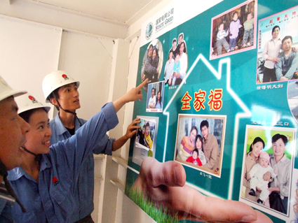 為進(jìn)一步樹立“以人為本、安全第一”的觀念,日前,安徽電建二公司開展了安全管理親情教育活動(dòng)。公司在所承建的每個(gè)項(xiàng)目工程施工班組內(nèi)掛起了本班組職工“全家!钡恼掌,有甜蜜的三口之家,有溫馨的四世同堂,班組職工在開工前看一眼“全家!闭掌肫鹩H人的囑托,心里更多了一份責(zé)任感,在工作中時(shí)刻不忘安全生產(chǎn),筑牢安全防線。瞧,該公司班組職工正在觀看“全家福”照片。