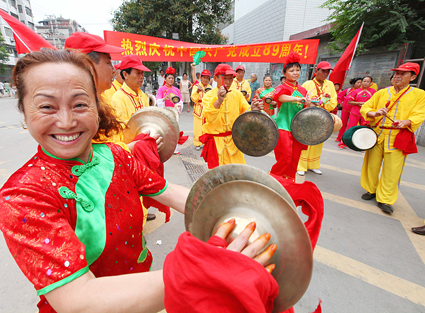 7月1日,謝家集區(qū)鬧市區(qū)一群退休老人打著喜慶的鑼鼓,跳著歡快的舞步喜迎“七一”。他們用這種群眾喜聞樂見的方式,宣傳黨的方針政策,歌頌黨的豐功偉績,盡情抒發(fā)對黨的熱愛和對美好生活的憧憬。
