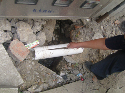 得知這一情況后,記者隨即趕到了謝家集區(qū)新華村,在村內(nèi)記者看到,原本架空的供水管道已經(jīng)全部改成地下鋪設(shè)了,在李先生的帶領(lǐng)下,記者看到很多正在施工的管道,直接浸泡在化糞池或者下水道內(nèi),讓人看了很不舒服。記者隨即電話聯(lián)系了西城水務(wù)工程部。據(jù)西城水務(wù)工程部一位姓景的同志介紹:“由于以前新華村內(nèi)飲用水管道是高空架設(shè),到了冬季經(jīng)常會因為保溫層脫落造成管道結(jié)冰,給村內(nèi)居民日常用水帶來一定困難。為了徹底解決居民冬季用水難的問題,西城水務(wù)決定把新華村內(nèi)管道重新鋪設(shè),由架空管道改為地下埋設(shè)管道,這樣就可以徹底解決冬季管道結(jié)冰的問題。至于記者提到的管道直接經(jīng)過化糞池和下水道,景先生告訴記者按照有關(guān)規(guī)定這是絕對不允許的。因為,萬一管道發(fā)生泄漏、或者安裝時接縫不嚴,肯定會對管道內(nèi)的飲用水造成污染,直接影響飲用者的身體健康。為了防止管道內(nèi)飲用水被污染,按照規(guī)定,即使是埋在地下的管道也必須要經(jīng)過“套管”處理,所謂“套管”就是在PPR管道外再套一層大的密封管道,這樣即使輸水管發(fā)生泄漏,也不會對飲用水造成污染,從而確保飲水安全。而即使是安裝了“套管”的管道,也不允許從化糞池和下水道內(nèi)經(jīng)過。由于新華村管線改造工程是承包給某施工單位負責(zé)施工,整個改造工程還沒有結(jié)束,西城水務(wù)還沒有對改造工程進行驗收!