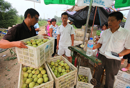 近年來,該鎮(zhèn)大力實施“雙培雙帶”先鋒工程,積極引導農民種植脆桃,走特色產業(yè)致富之路。目前,曹店村紅心脆桃種植示范園面積已發(fā)展到300多畝,年增效益60萬元。目前,該果園桃子正是豐收季節(jié),每天吸引大量當地、外地批發(fā)商到田間地頭來收購紅心脆桃。