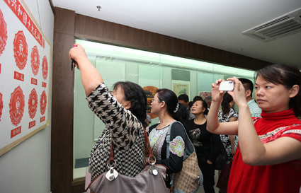9月15日,淮南人民飽享“盛宴”。第十七屆中國(guó)豆腐文化節(jié)和第十屆中國(guó)淮南八公山旅游節(jié)各項(xiàng)活動(dòng)精彩紛呈,吸引了眾多群眾的眼球;茨铣两谝黄瑲g樂(lè)祥和的氛圍中。圖一:八公山旅游節(jié)上,精彩的民間文藝演出彰顯出濃郁的地方特色。圖二:兩岸名家剪紙、攝影藝術(shù)展引人入勝。