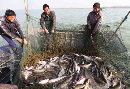 趁著天氣晴好,連日來,謝家集區(qū)瓦埠湖水域養(yǎng)殖戶正抓緊捕魚,供應(yīng)市場(chǎng)。據(jù)了解,該區(qū)瓦埠湖水產(chǎn)面積達(dá)8萬余畝,日產(chǎn)鰱魚、青魚最多能達(dá)2萬公斤。水產(chǎn)養(yǎng)殖業(yè)發(fā)展至今,已經(jīng)形成了一套適合本地條件、有自身特色的水產(chǎn)養(yǎng)殖體系,生產(chǎn)的鰱魚、瓦蝦、銀魚、毛刀魚等供不應(yīng)求,并逐漸形成了瓦埠湖無公害品牌。