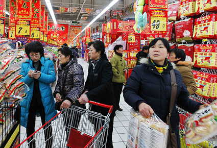 1月20日,市民們在大型超市內精心選購年貨。隨著新春佳節(jié)臨近,我市各大超市用紅燈籠和福字裝飾一新,吃用的商品和禮品一應俱全,琳瑯滿目,各種促銷活動吸引人們購買,紅紅火火喜慶迎春節(jié)。