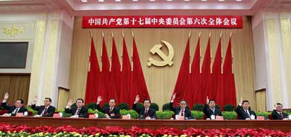 。ǎ玻埃保蹦辏保霸拢保溉罩袊(guó)共產(chǎn)黨第十七屆中央委員會(huì)第六次全體會(huì)議通過)