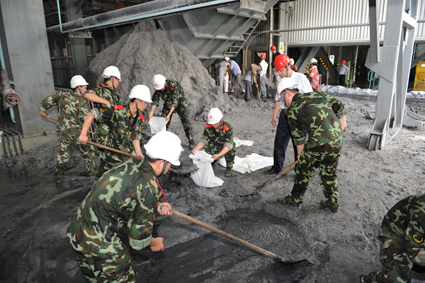 近日,洛河發(fā)電廠6號爐撈渣機突然跳閘,為了給設(shè)備搶修工作贏得時間,必須將現(xiàn)場人工排出的大量灰渣及時的清理出去。在搶修人員不足的緊急關(guān)頭,駐該廠武警二中隊聞訊后迅速派出精兵強將奔赴現(xiàn)場主動承擔起灰渣清理工作。