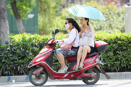 據(jù)安徽省氣象臺2012年07月23日09時50分確認高溫橙色預警信號。24小時內(nèi)沿淮淮河以南部分地區(qū)最高氣溫將超過 37℃。我市迎來了今年的最高溫,圖為記者在我市街邊拍攝的高溫下的“城市臉譜”。