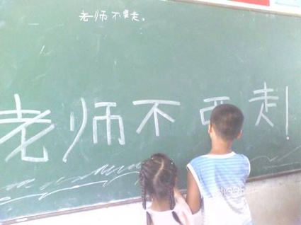 記者走到孩子們中間,他們的面龐黝黑稚嫩,很用心說(shuō)的普通話難以掩蓋鄉(xiāng)音,寡瘦的手臂在黑板上歪歪斜斜地書(shū)寫(xiě)著“老師不要走!”這幾個(gè)稚嫩、簡(jiǎn)單的字體正是他們的心聲。一股無(wú)形的力量感染著在場(chǎng)的每一個(gè)人。