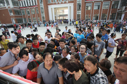 9月6日,是淮南二中高一新生開學(xué)報(bào)到的日子,2000名學(xué)子高高興興地步入新校園報(bào)到。這是新落成的新校區(qū)迎來的第一批高一新生。圖一為一大清早,新生們?cè)诩议L(zhǎng)的陪同下從四面八方進(jìn)入新校園。圖二為家長(zhǎng)和新生在看分班信息。