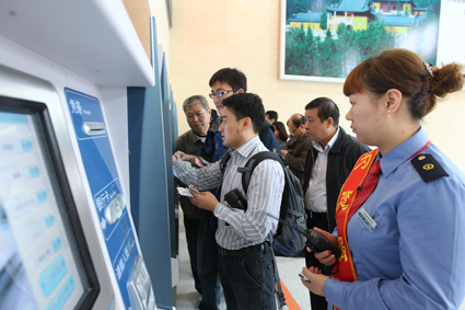圖一:高鐵正式開通引得八方市民前來體驗(yàn)。 圖二:自動售票機(jī)前購票,淮南市民欲第一時間來感受高鐵速度。 圖三:寬敞明亮的候車大廳。 圖四:高鐵站內(nèi)一隅。