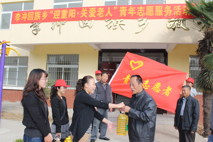 為進(jìn)一步弘揚奉獻(xiàn)、友愛、互助、進(jìn)步志愿服務(wù)精神和中華民族愛老敬老傳統(tǒng)美德,在重陽節(jié)來臨之際,鳳臺縣李沖回族鄉(xiāng)團(tuán)委組織十多名青年志愿者前往鄉(xiāng)敬老院,為老人們送去了米、食用油和水果等節(jié)日禮品,并為老人們進(jìn)行量血壓、聽心率、做心電圖等常規(guī)檢查,還幫助老人整理房間,為老人們送去了一份貼心的溫暖,讓老人們享受到了社會的關(guān)愛之情。