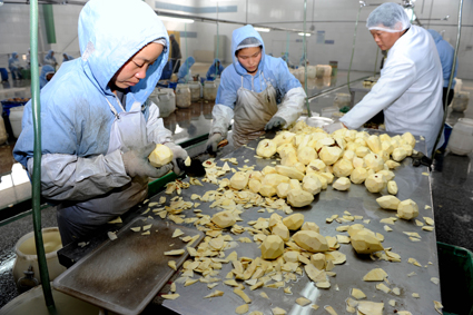 圖三:淮南白藍(lán)集團(tuán)工人加工訂單山芋出口韓國(guó)。
