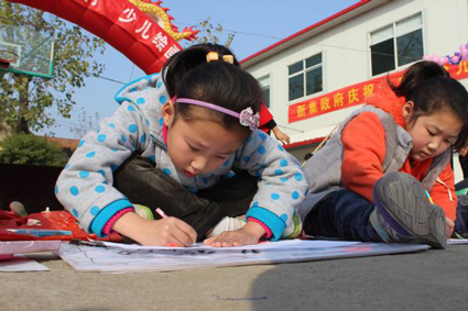 11月17日,在新集鎮(zhèn)舉辦的“慶祝十八大、建設(shè)美好鄉(xiāng)村”少兒書畫展上,近百名少年兒童集體作畫。看,他們畫得多認(rèn)真。