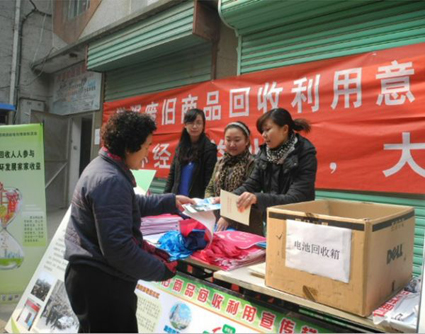 在活動現(xiàn)場,“綠天使”們不僅向小區(qū)居民發(fā)放宣傳單頁、宣傳冊及環(huán)保袋,并安放了廢舊電池回收箱;顒舆通過圖片展板等形式,向居民宣傳廢舊商品回收利用的重要意義。據(jù)了解,本次活動共發(fā)放宣傳單頁400張、宣傳冊260本、環(huán)保袋130個。今年廢舊商品宣傳月活動的主題為“綠色回收四進活動”,除了本次“綠色回收進社區(qū)”活動,市商務(wù)部門還開展了“綠色回收進機關(guān)”、“綠色回收進商場”活動,下一步,我市還將開展“綠色回收進校園”活動。