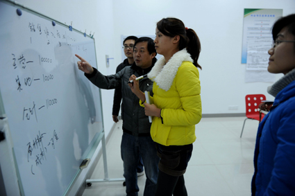 針對(duì)大學(xué)生就業(yè)難現(xiàn)狀,日前,市人力資源和社會(huì)保障局分期分批組織200余名大學(xué)生開展免費(fèi)創(chuàng)業(yè)實(shí)訓(xùn),通過(guò)大學(xué)生在網(wǎng)上組建模擬公司,體驗(yàn)創(chuàng)業(yè)過(guò)程,培養(yǎng)創(chuàng)業(yè)意識(shí),提高大學(xué)生創(chuàng)業(yè)成功率和競(jìng)爭(zhēng)力,以創(chuàng)業(yè)帶動(dòng)就業(yè)。圖為大學(xué)生李茜茜(右二)認(rèn)真填寫模擬企業(yè)銷售收入報(bào)表。