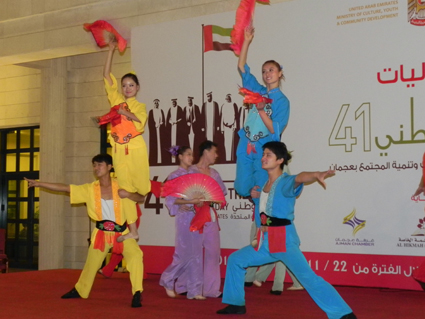 11月29日至12月2日,鳳臺(tái)縣花鼓燈藝術(shù)團(tuán)應(yīng)邀赴阿聯(lián)酋參加該國41周年國慶演出活動(dòng),為該國觀眾奉獻(xiàn)了4場精彩的花鼓燈舞蹈節(jié)目。