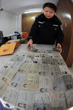 圖二:市公安局洞山派出所民警整理1月1日失效的第一代居民身份證。