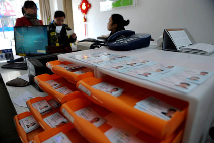 圖一:市民領(lǐng)取辦理好的第二代居民身份證。