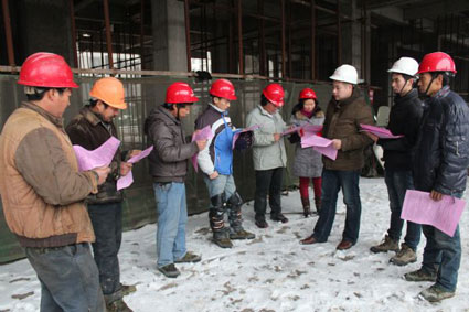 近日,鳳臺縣相關(guān)部門組織勞動監(jiān)察人員深入轄區(qū)各建筑工地,向廣大農(nóng)民宣傳用工合同、工傷保險、工資報酬及如何維護自身權(quán)益等。據(jù)介紹,年終歲末,鳳臺縣加大了農(nóng)民工維權(quán)力度,進一步提高建筑企業(yè)和農(nóng)民工的法律素質(zhì),規(guī)范企業(yè)的用工行為,增強農(nóng)民工的自我維權(quán)意識。圖為勞動監(jiān)察人員在向農(nóng)民工宣傳《勞動保障監(jiān)察條例》。