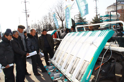新年伊始,鳳臺縣農(nóng)業(yè)部門圍繞全縣2013年實現(xiàn)水稻機插秧全覆蓋的目標,通過機插秧理論和現(xiàn)場培訓等方式,宣傳推廣機插秧技術(shù),努力把全縣水稻生產(chǎn)機械化提高到一個新水平。圖為該縣農(nóng)民在觀摩新式高速插秧機。