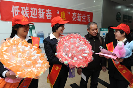 日前,淮南供電公司團委開展“低碳迎新春‘電’亮新生活”主題活動,為繳納電費的市民免費贈送節(jié)能燈泡,倡導低碳生活迎新年。