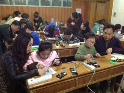 2月3日上午,一群放寒假的孩子正和爸爸媽媽一起動手組裝收音機,這是淮南市田家庵科協(xié)利用假期進行科普活動中的一項重要內(nèi)容,2013年田家庵區(qū)電子制作活動開始啦,來自田區(qū)的30位小學生和他們的家長在實踐活動中體驗快樂,增長知識。