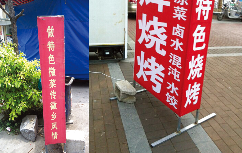 8月6日,記者在朝陽路一家土菜館門前看到,一塊較大的宣傳牌上赫然寫著“做特色微菜傳微鄉(xiāng)風(fēng)情”,“微菜”和“微鄉(xiāng)風(fēng)情”似乎讓人有點不明就里,在跟老板交流之后才知道,其實他想表達(dá)的是“做特色徽菜傳徽鄉(xiāng)風(fēng)情”。雖然字形看起來差不多,可是這兩個字的意思卻差了許多。