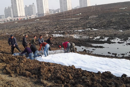 圖二:工人們正在鋪設(shè)防水毯