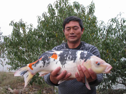 圖:楊同防手中展示的這條錦鯉據(jù)稱市場(chǎng)價(jià)賣(mài)4000多元
