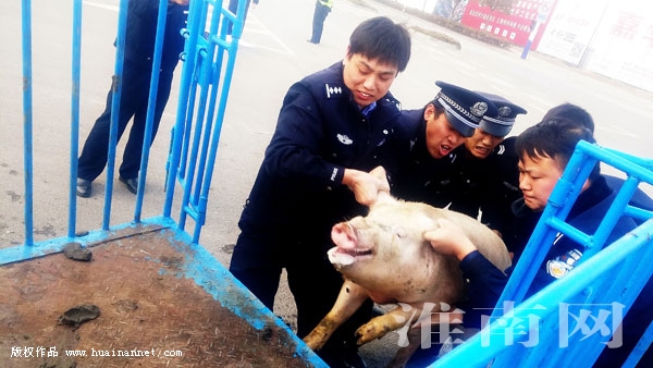 圖二:幫助群眾將逃跑的豬抓回(圖片由三和派出所提供)