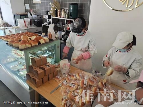 從4月2日凌晨,店主開(kāi)始和面醒面,早上和店員一起做面包,直到下午4時(shí)許,300個(gè)面包出爐打包裝袋,由物業(yè)幫忙送到泉山街道,讓一線(xiàn)抗疫人員吃上新鮮香甜的面包,作為普通市民也為抗疫出點(diǎn)力。