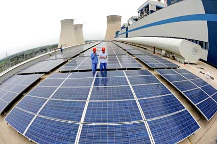作為總裝機(jī)容量達(dá)到258萬(wàn)千瓦的“皖電東送”大型骨干火電廠,田集發(fā)電廠卻細(xì)算環(huán)保小賬,利用主廠房屋頂安裝250瓦多晶體硅光伏組件1400塊,預(yù)計(jì)平均年發(fā)電32.97萬(wàn)千瓦時(shí),可滿足廠區(qū)道路照明。
