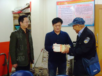 2015年10月29日上午,唐朝正來到淮南市圖書館,只見他將十余本圖書遞給館長楊毅,唐朝正告訴楊毅,所有的書都是自己免費贈送的,他這樣做,只是想將自己一生的經(jīng)歷記錄下來,希望給后代的工作、生活一些啟發(fā),留下些精神財富。唐老說:“這本書是對過去青春歷程的回顧,是人生閱歷的沉積,是過去生活的總結(jié)。我想通過這本書告訴讀者,不論身處何種環(huán)境,要始終忠于人民、忠于黨;擁有愛心,最重要的是要始終保持勤勞勇敢的優(yōu)良品質(zhì),共同構(gòu)建和諧的法制社會。”楊毅對老人此舉表示感謝。