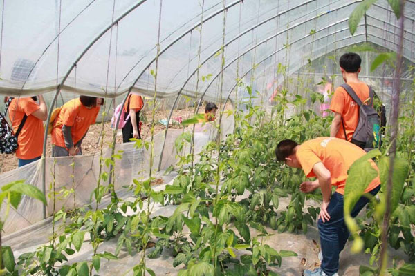 圖二:志愿者在種植基地了解蔬菜種植情況
