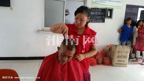 到達(dá)敬老院后,志愿者明確分工,為老人整理床鋪、打掃衛(wèi)生、理發(fā)、剪指甲,各司其職,忙得熱火朝天。餐廳里、樹蔭下,宿舍里到處都是一個(gè)個(gè)紅色的身影,整個(gè)敬老院里都洋溢著幸福、歡樂、祥和的氣息。