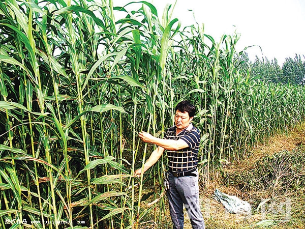 圖二:王根查看長勢旺盛的甜高粱