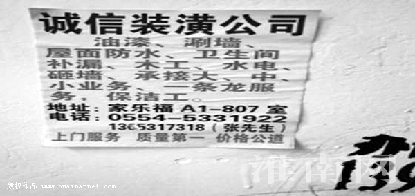 其他非法張貼、涂寫、刻畫小廣告的單位或個(gè)人,請(qǐng)立即自行整改、清除,否則將予以從重處罰,并將按照有關(guān)規(guī)定暫停其通訊號(hào)碼的使用。監(jiān)督電話:6666670。